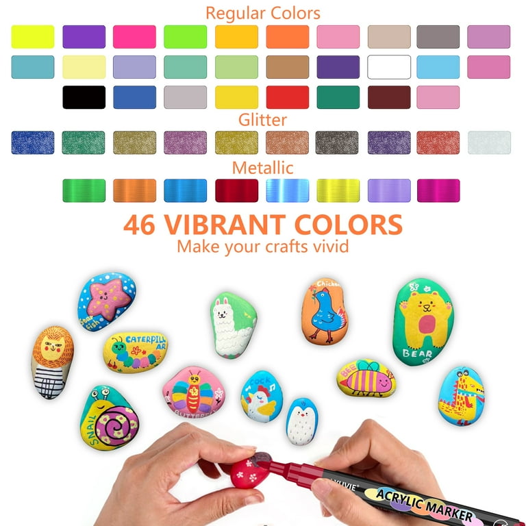 Art Acrylic Paint Pens 46 Acrylic Paint Markers Extra Fine Tip Paint Pens 0 7mm Great For Rock Painting Wood Canvas Ceramic Fabric Glass Age 5 Year Adult Walmart Com