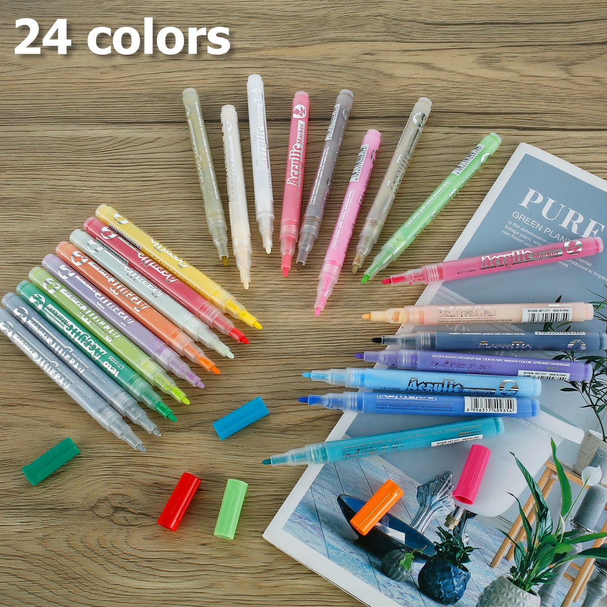 Mtfun 24pc Acrylic Paint Pens Markers Set Permanent Coloring Paint Marker For Painting Doodling Waterproof Markers Brush Pen Set Diy Maker Pen Set Walmart Com